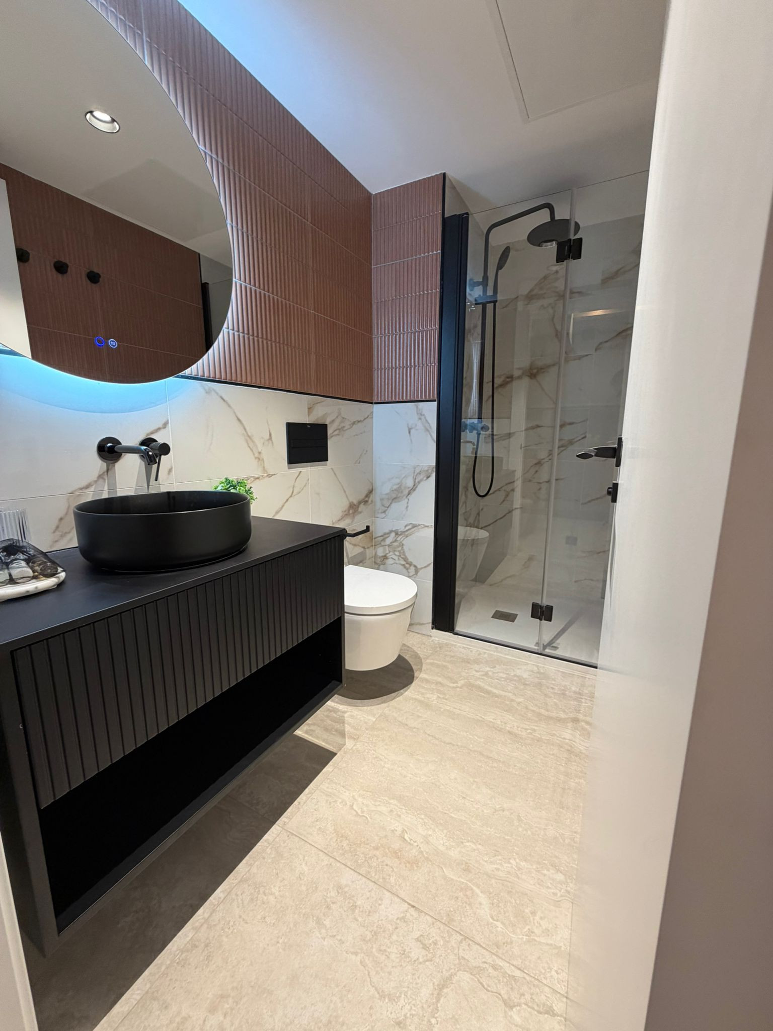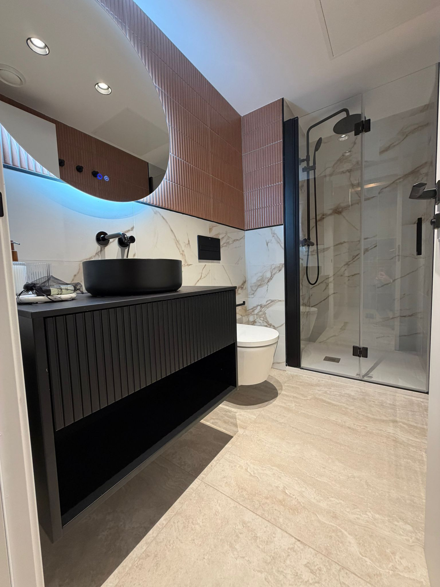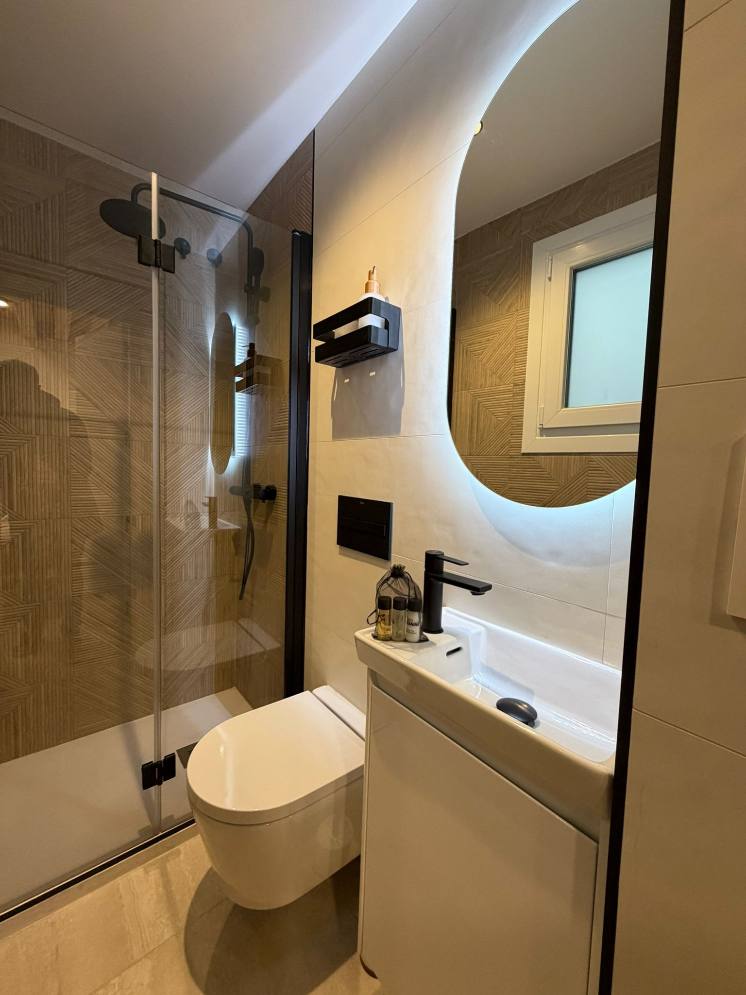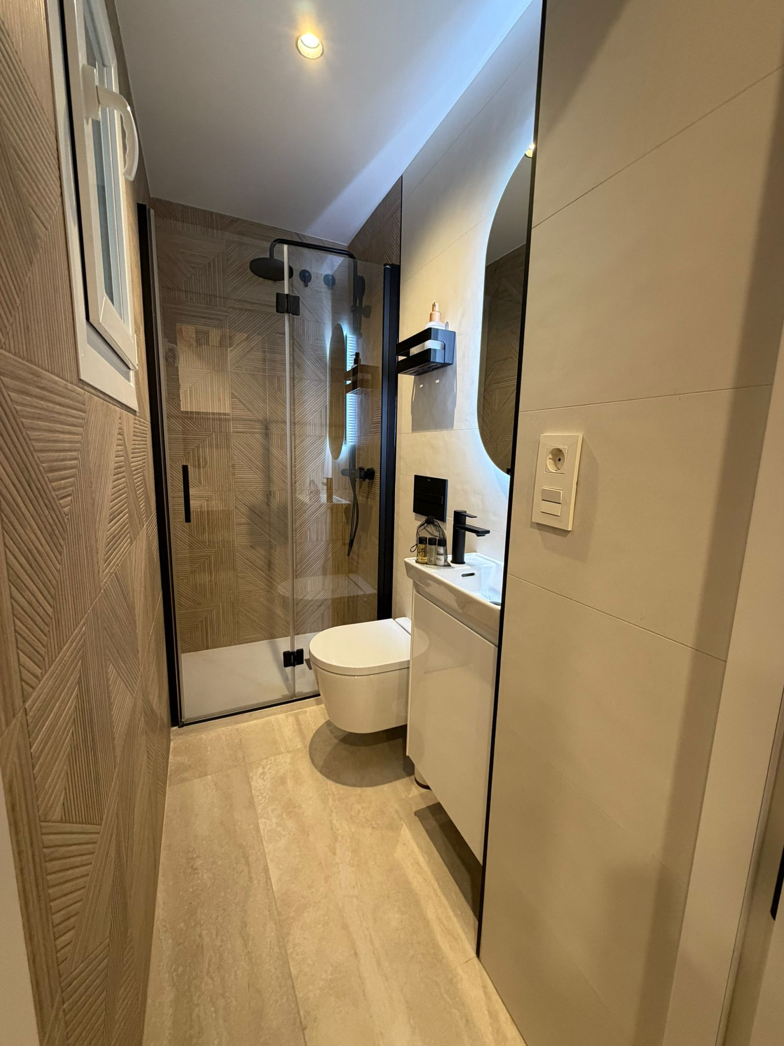 El apartamento cuenta con dos baños con ducha que proporcionan comodidad y privacidad para todos los huéspedes.
