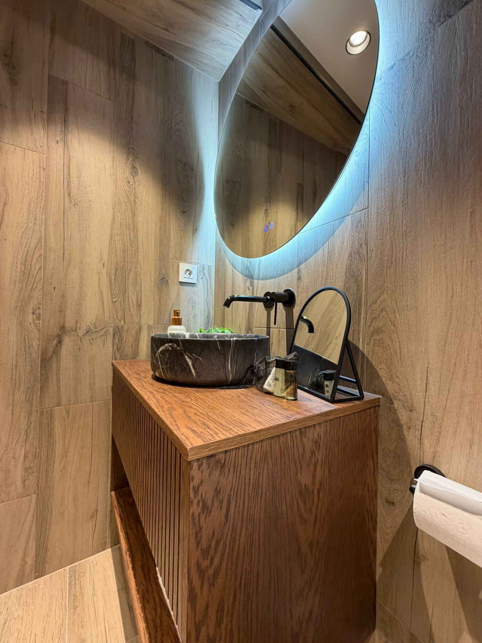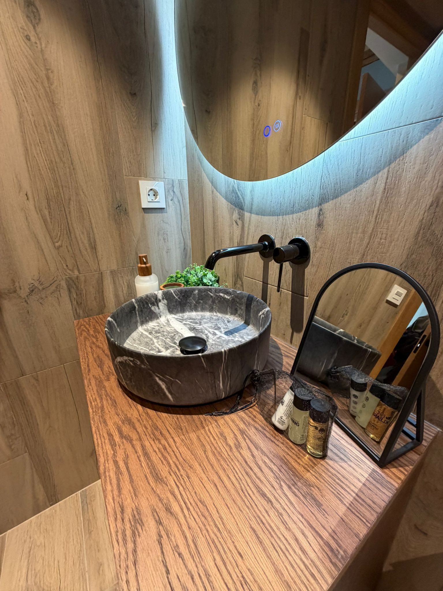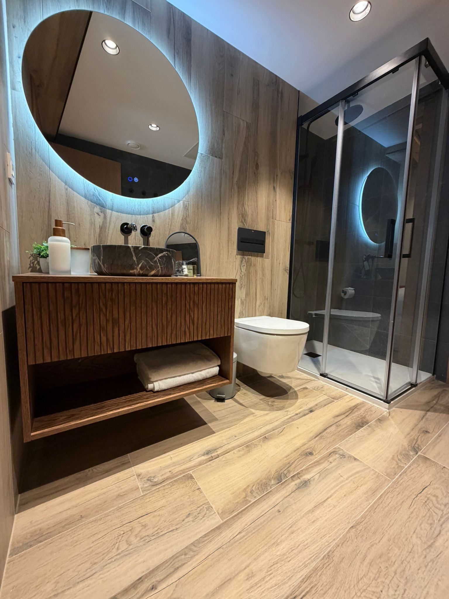 El baño cuenta con ducha y está totalmente equipado para satisfacer todas las necesidades. El apartamento incluye servicios adicionales como WiFi, televisión, plancha y sistema frio/calor de suelo radiante para garantizar el máximo confort en cualquier época del año.