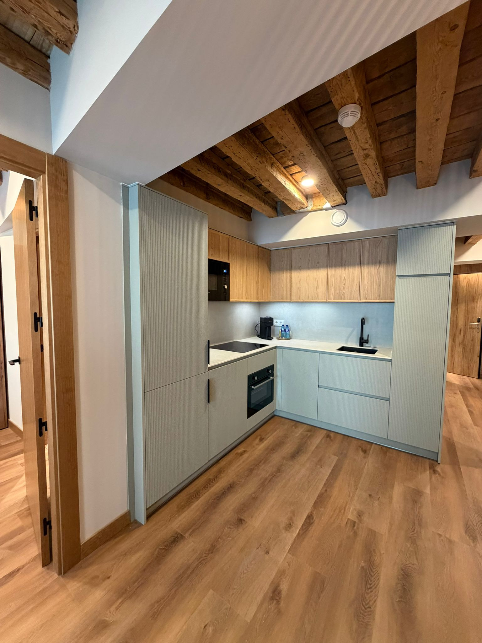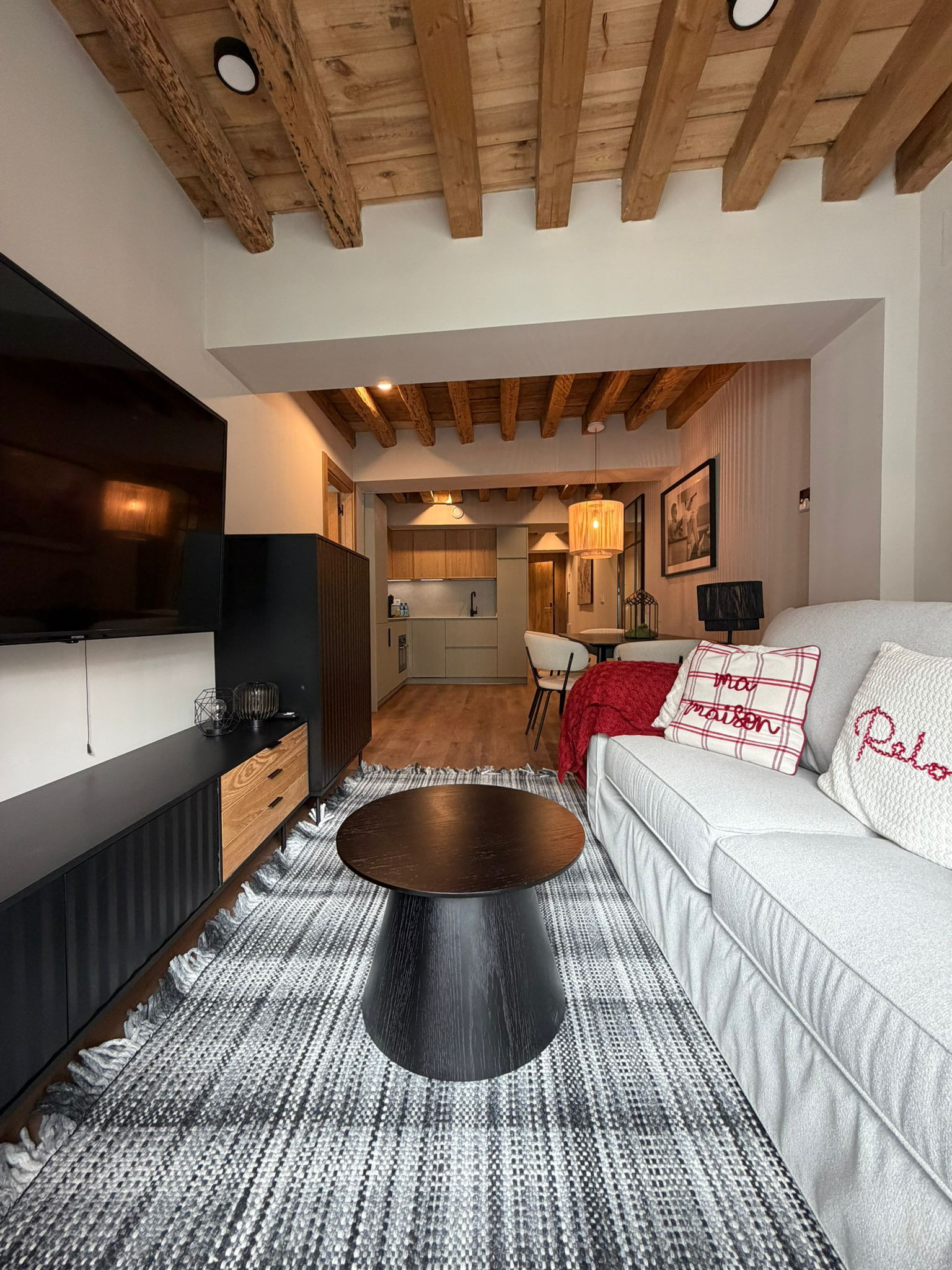 El apartamento cuenta con 58.17 metros cuadrados distribuidos inteligentemente, ofreciendo un espacio luminoso y moderno. Dispone de 2 habitaciones con cama de matrimonio y 1 sofá cama doble en el salón, lo que permite alojar cómodamente hasta 6 personas.